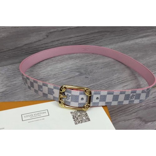 Louis Vuitton M9942U LV Malletier 25MM Damier Azur Womens Belts Gold Buckle