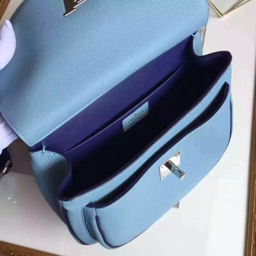 LOUIS VUITTON MARCEAU TAURILLON BLEUET M50350SKU:1C018-013SIZE: 25*21*6 CM- Taurillon leather- Calf-leather and cotton trim- Calf-leather lining- Silver color metallic pieces- LV twist lock- Large removable, adjustable textile strap- 2 compartments, 1 front and 1 back- 1 flat inside pocketA polished city bag with a relaxed attitude, the Marceau in vibrant Taurillon leather goes everywhere in style, worn over the shoulder or cross-body. Convenient and comfortable, lightweight and supple, it has been designed to be body-friendly. The LV twist lock firmly (yet subtly) anchors the piece in Vuitton’s heritage of fine craftsmanship.