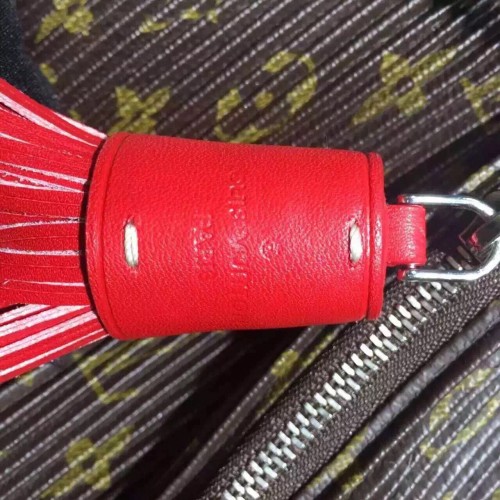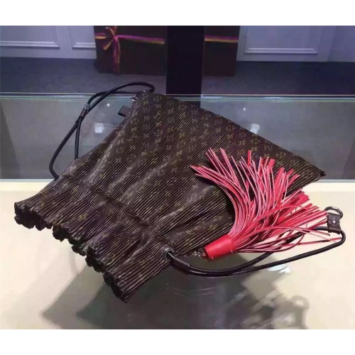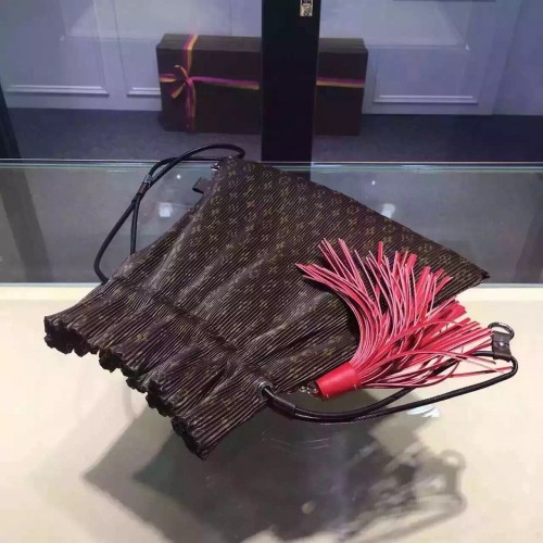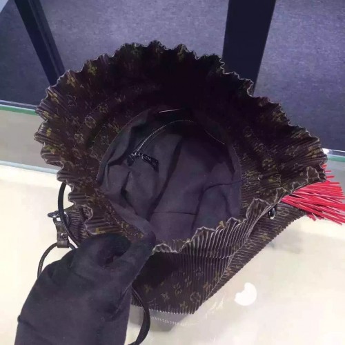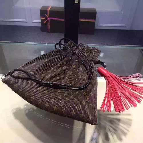 size:36.5*37 cmInspired by Louis Vuitton's Spring/Summer 2016 fashion show, the Triangle Warrior Pouch in Monogram-print fabric is a lightweight, urban design whose long leather strap enables it to be carried in many different ways. The oversize pompom adds a playful, feminine touch.- Zipper closure- Multiple-carry leather strap- Pleated fabric- Monogram canvas and calf leather trim- Microfiber lining- Silver color metallic pieces