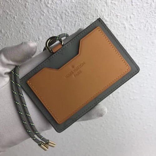 The Cosmos ID holder is crafted from gray Monogram Titanium canvas, seen at Louis Vuitton's Fall-Winter 2018-19 men's fashion show, and complemented by natural cowhide-leather trim. Ideal for carrying essential cards and ID, it can be worn around the neck on its matching ribbon, or simply slipped into a pocket.