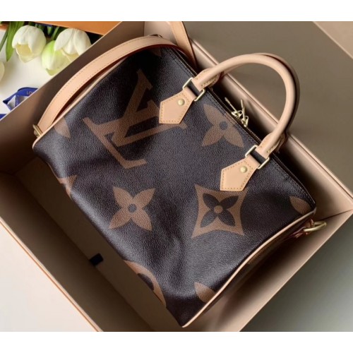 The ever-stylish Speedy handbag shows a new face for Pre-Fall 2019. This model features the super-sized Monogram Giant motif paired with Monogram Reverse, two fresh iterations of the iconic pattern that give it a modern allure. With twin Toron handles and a long strap, it is a versatile bag to carry every day.