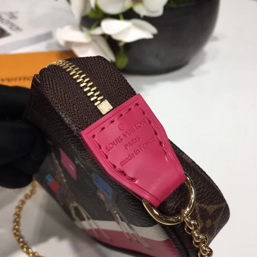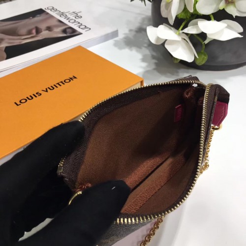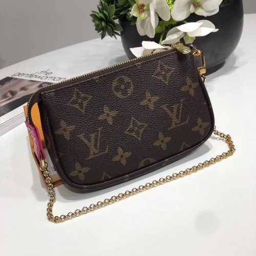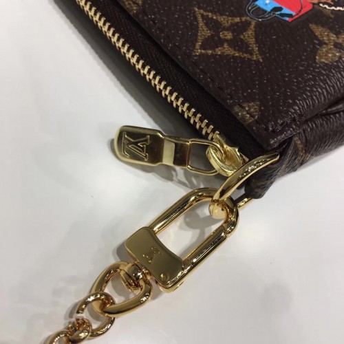 - 14.5 x 9.5 cm- length x height- 5.3 x 3.7 inches- Monogram coated canvas- Textile lining- Shiny gold colored metallic pieces- Zip closure- 1 golden chain