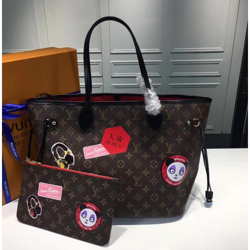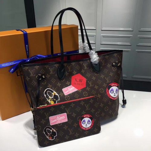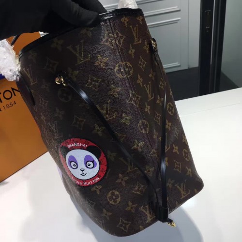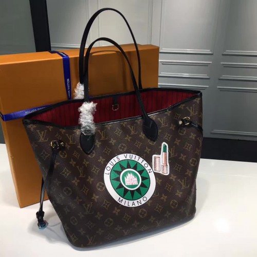 Louis Vuitton Monogram Canvas Badge Detail Neverfull MM Bag 2017