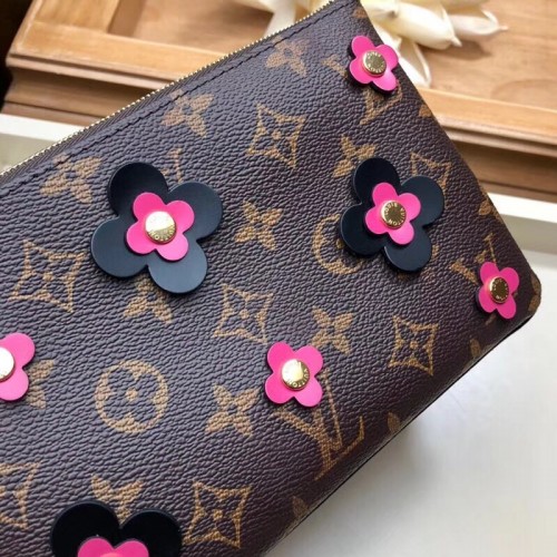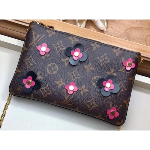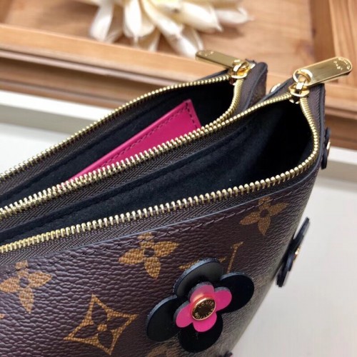 Louis Vuitton Monogram Canvas Blooming Flowers Pochette Double Zip Bag M63905 Black 2019