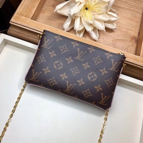 Louis Vuitton Monogram Canvas Blooming Flowers Pochette Double Zip Bag M63905 Pink 2019