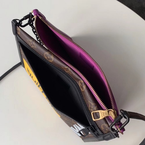 Louis Vuitton Monogram Canvas Chalk Double Flat Messenger Bag M44641 Marron 2019