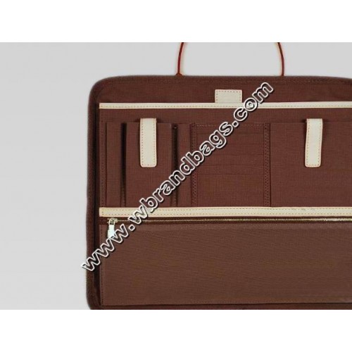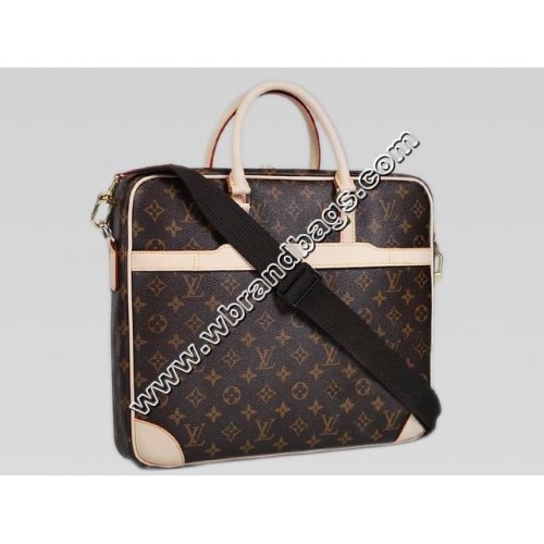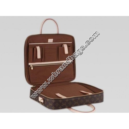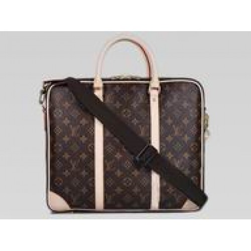 Cupertino is made from classical Monogram canvas. It is a timeless case housing business essentials and a 15" laptop in a special foamed compartment. The back strap over handle is very practical.