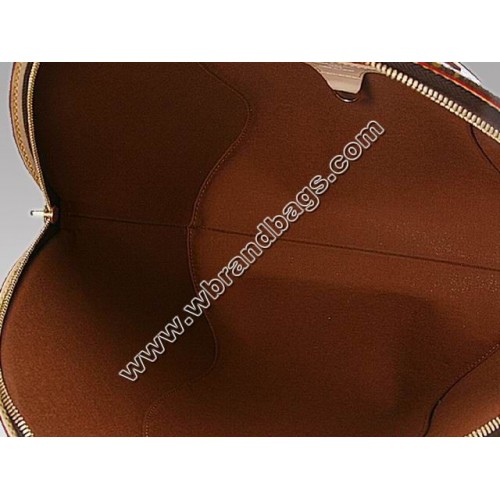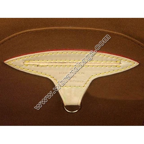 - Monogram canvas, rounded leather handles, brown canvas lining