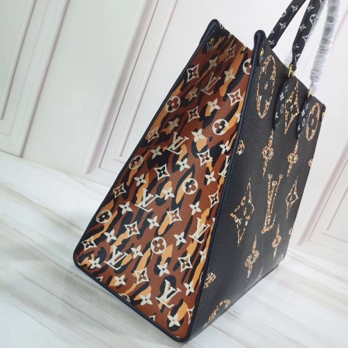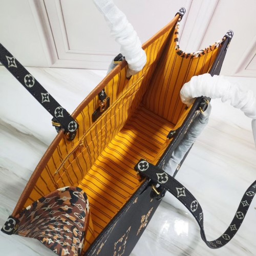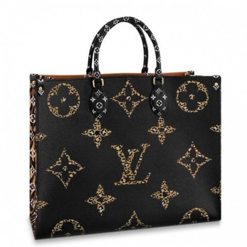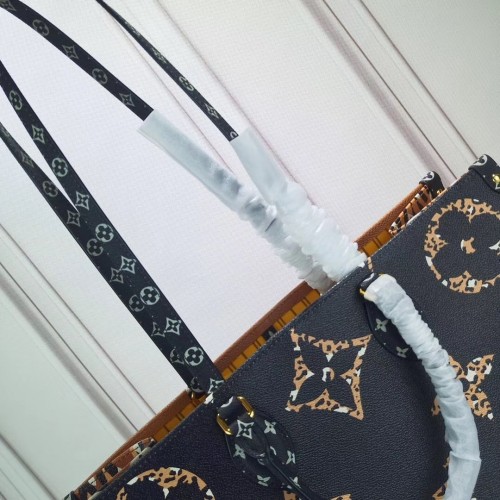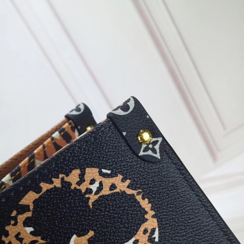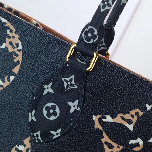 Louis Vuitton Monogram Canvas Leopard Print Onthego Tote Bag M44674 Black/Brown 2019