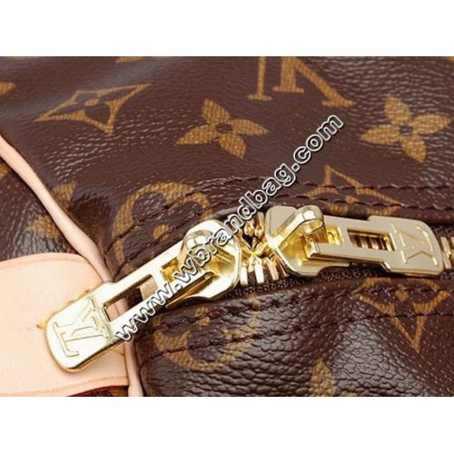 The Keepall is a classic of the Louis Vuitton travel bag collectsion. This medium-sized version in Monogram canvas features comfortable rounded leather handles and a double zipper.
