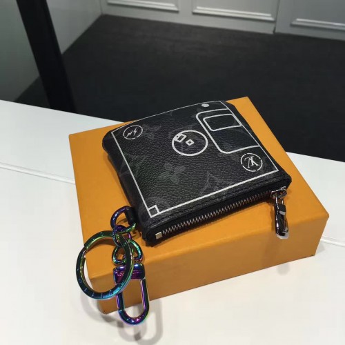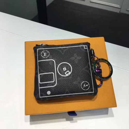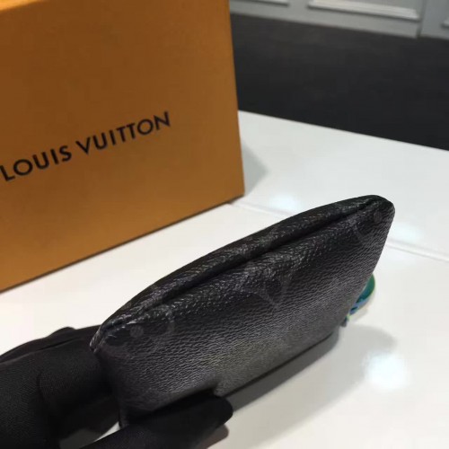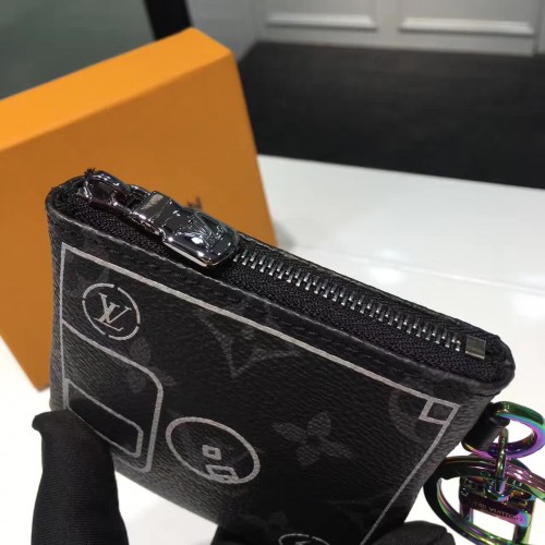 10 x 10 cm3.9 x 3.9 inches - Monogram Eclipse coated canvas exterior- Textile lining- Ruthenium and Rainbow colored metallic pieces - Zip closure- Key ring