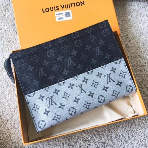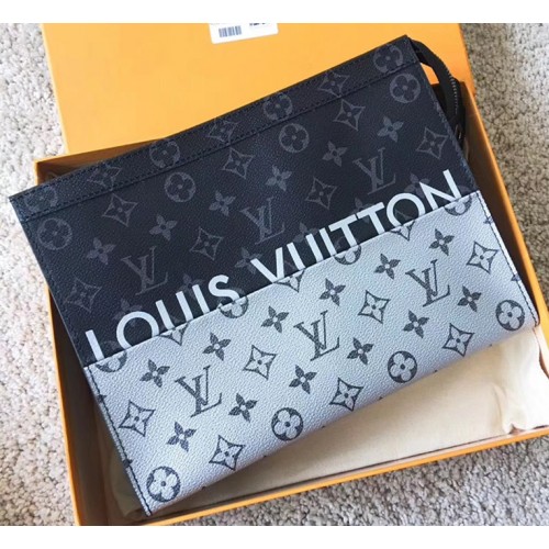 Louis Vuitton Monogram Eclipse Split Pochette Voyage MM Bag M63039 Silver 2018