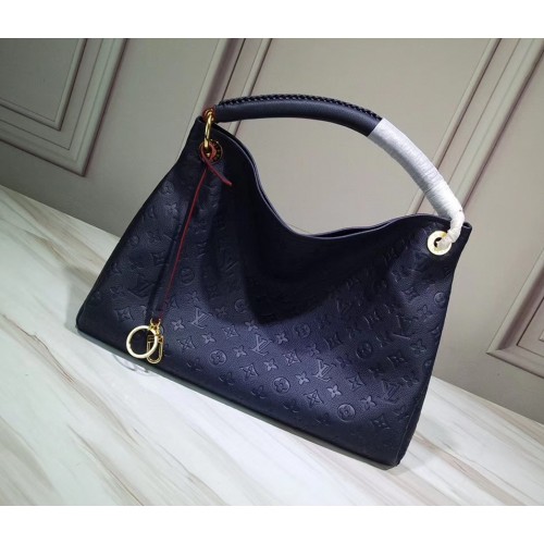 the Artsy MM is a timeless tote bag.In sumptuous embossed Monogram Empreinte leather,a luxuriously ornate handle and rich golden brass pieces create a refined look.Feature:-Embossed calf leather with smooth leather trimmings;-Louis Vuitton engraved eyelets, rings and bag charm;-1 interior long zipped pocket and 6 patch pockets;-Dring for keys and accessories;-Bag charm that can be used inside as a keyhanger;-striped textile lining;-Protective bottom studs.Size:46.0 x 32.0 x 24.0 cm