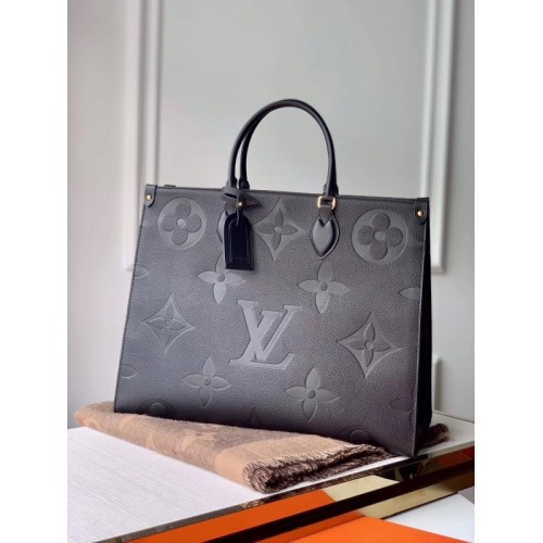 Louis Vuitton M45495 LV OnTheGo MM medium tote bag Black Embossed grained cowhide leather