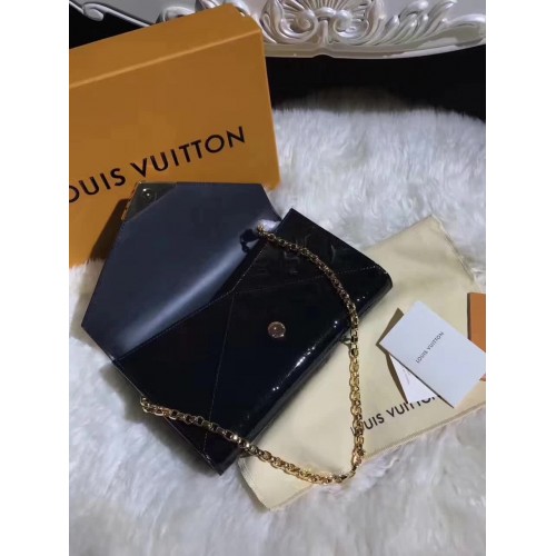 Louis Vuitton Monogram Vernis Leather Envelope Clutch on Chain M90990 Black