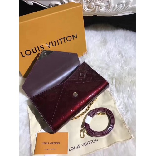 Louis Vuitton Monogram Vernis Leather Envelope Clutch on Chain M90990 Burgundy