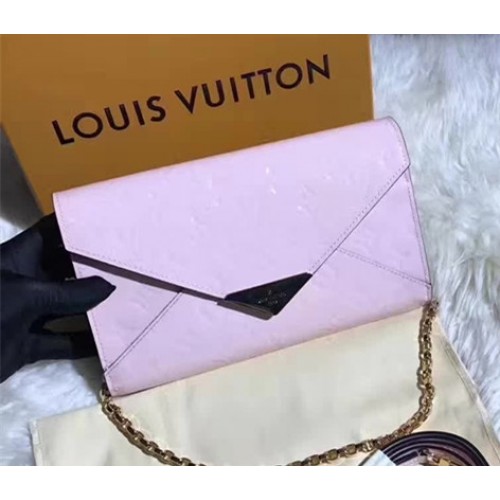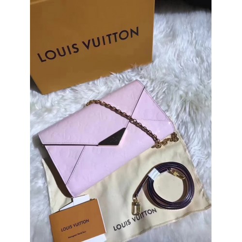 Louis Vuitton Monogram Vernis Leather Envelope Clutch on Chain M90990 Light Pink