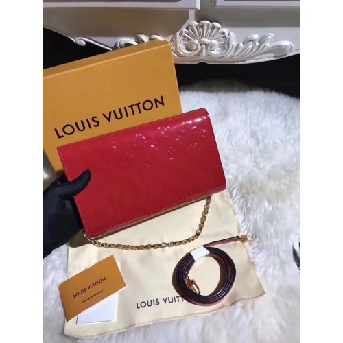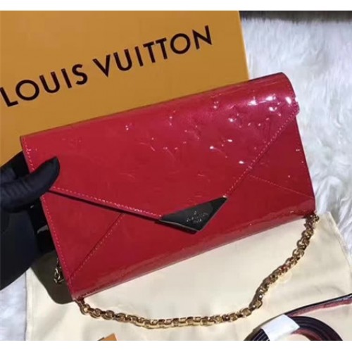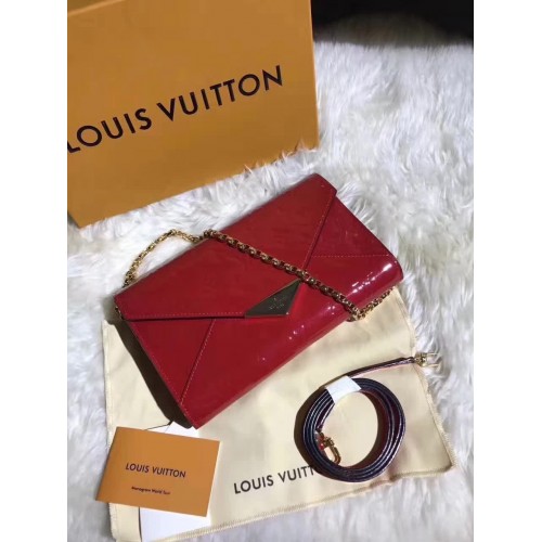 Louis Vuitton Monogram Vernis Leather Envelope Clutch on Chain M90990 Red