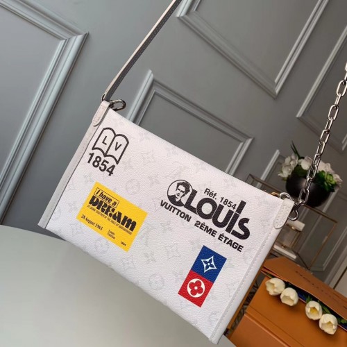 Louis Vuitton Monogram White Canvas Chalk Double Flat Messenger Bag M44640 2019