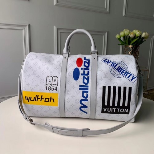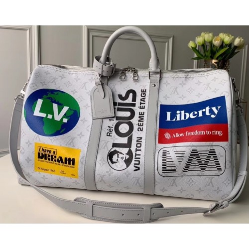 Louis Vuitton Monogram White Canvas Chalk Keepall Bandouliere 50 Bag M44643 2019