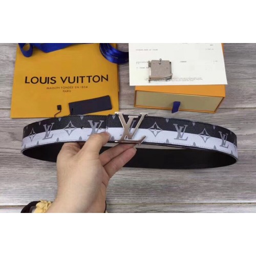 Louis Vuitton MP034S LV Initiales 40MM Double Monogram Eclipse Canvas Belts Silver Buckle