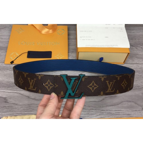 Louis Vuitton MP109V LV Initiales 40mm reversible belt In Blue Epi/Monogram Canvas With Green Buckle