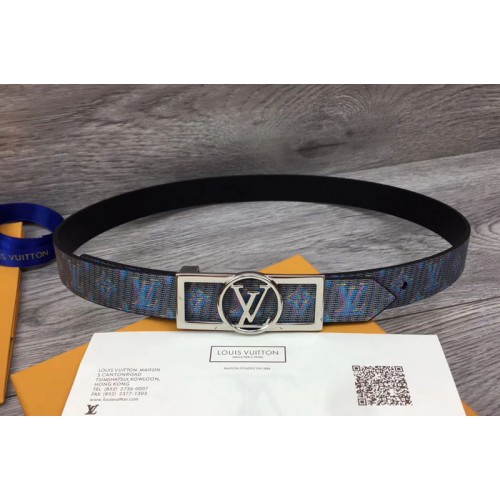 Louis Vuitton MP136W LV Dauphine 25mm Reversible belts Blue/Navy Blue Monogram LV POP Print Silver Buckle