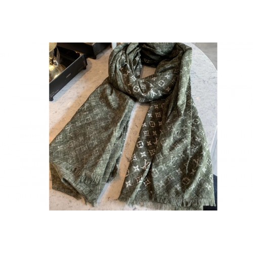 Louis Vuitton MP2432 LV Monogram Denim stole Scarf 100% cotton Green Color