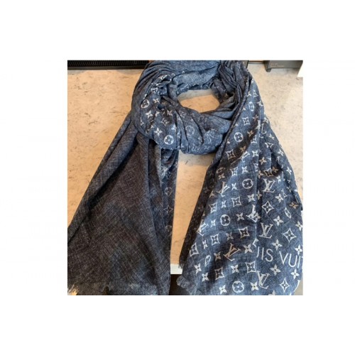 Louis Vuitton MP2433 LV Monogram Denim stole Scarf 100% cotton Denim Blue Color