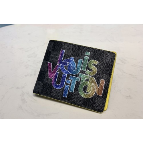 This season, Virgil Abloh’s new Louis Vuitton signature in interlinked rainbow-color letters brings a playful feel to this Multiple Wallet in Damier Graphite canvas. The perfectly named Multiple has a myriad of pockets, slots and compartments to carry cards, coins and bills. This neat little wallet fits in almost any pocket.