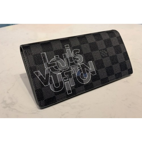 Louis Vuitton N60326 LV Brazza Wallet In Damier Graphite Canvas With Gray