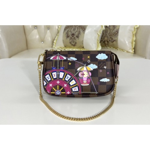 Louis Vuitton N60402 LV Mini Pochette Accessoires Bag in Damier Ebene coated canvas