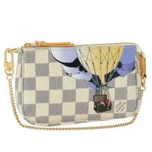 Material: Damier Azur CanavasSize:14 x 9 x 2 cm The Mini Pochette Accessoires Illustre in Damier Azur is a delightful wrist or bag accessory. Adding a vintage 1910 illustration that recalls Louis Vuitton's heritage makes it even more appealing.-Zipper closure-Golden brass hardware-Textile lining