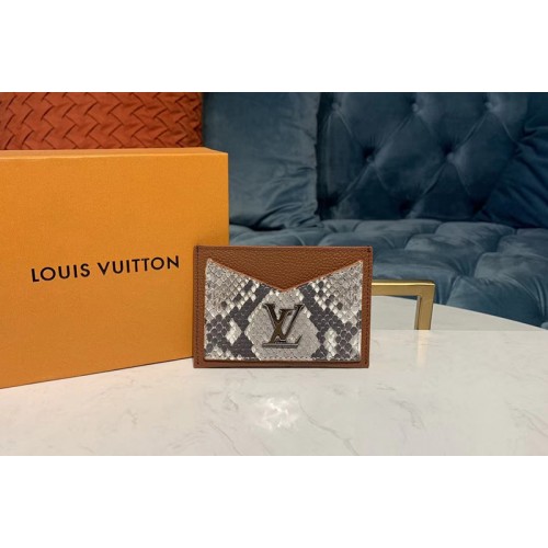 Louis Vuitton N97001 LV Lockme card holder Brown Python skin and calf leather