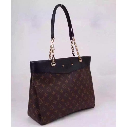 Louis Vuitton Noir Pallas Shopper Bag M51198 SKU:3a045Size:37cm27m12cmA glamorous addition to the Pallas line, this new shoulder tote offers everything an active modern woman craves. The sleek feminine design combines Monogram canvas with deeply hued calf leather and luxe detailing, witness the gleaming chain and decorative rivets surrounding the embossed “Louis Vuitton Paris” signature. Thanks to an extra-roomy trapeze base, the bag transitions from pleasure to business, accommodating shopping-trip treasures alongside important documents or tablets.