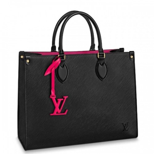 The Onthego MM tote bag is made from Epi grained leather with an inside lining in a contrasting color and accessorized with an eye-catching LV charm. Two sets of handles, long and short, allow hand and shoulder carry, and a roomy interior, which easily fits work essentials, including a laptop, make it a versatile everyday bag.