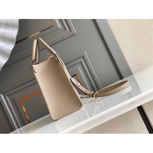Inspired by Louis Vuitton’s famous Sac Plat from 1968, the Onthego PM tote is fashioned in Monogram Empreinte leather, embossed with a Giant Bicolor Monogram pattern. This smaller version of the original Onthego fits essentials such as an iPad Mini. Articulated top handles and an adjustable removable strap offer a variety of carry options.