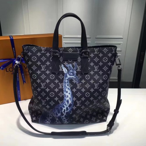 Louis Vuitton Original Leather Giraffe Print Tote NS Monogram Men’s Bag M54127 Black 2017