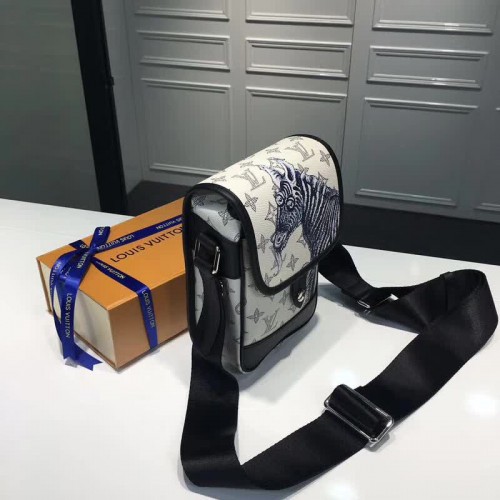 Louis Vuitton Original Leather Zebra Print Men’s Mini Shoulder Bag M54246 Black 2017