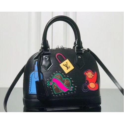 Louis Vuitton Patches Stickers Epi Alma BB Bag M52481 Black 2019