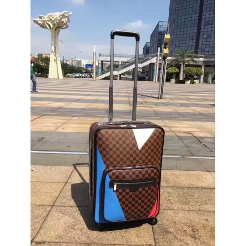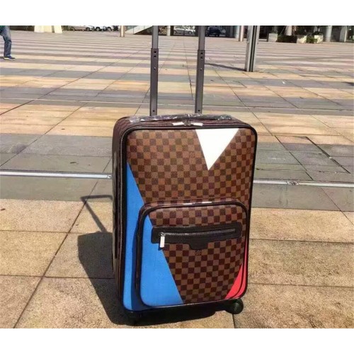 In Damier Ebene canvas adorned with the historical V Gaston logo, emblematic of Louis Vuitton’s spirit of travel since 1901, the Pégase Légère Regatta is a celebration of the House’s partnership with the 35th America’s Cup. With its no-nonsense style and elegance, this lightweight cabin-sized suitcase holds a maximum amount of kit, thanks to multiple compartments and zippered pockets.54*40*20 cm- Top handle- Side handle- Telescopic cane - Damier Cobalt coated canvas exterior- Textile lining- Leather trim- Silver coloured metallic pieces- Front zipped pocket- Double zip closure - 2 interior zipped pockets - Interior compartment with two flaps and a zipped pocket- Clothing protection flaps & garment cover with hanger