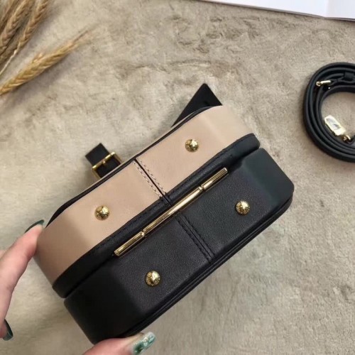 House traditions of trunk-making and fine leatherwork come together in this miniature “hatbox” crafted of beige natural cowhide and black calfskin. A standout on the SS 18 runway, this covetable piece can be carried or worn cross-body on its removable strap. 17.5 x 16.5 x 7.5 cm ( length x height x width )