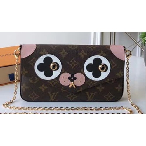 For Valentine's Day, an adorable dog incorporating iconic Louis Vuitton details adds a touch of fun to the Pochette Felicie in Monogram canvas. The stylish solution to carry and organize daily essentials, it features two removable interior pockets and can be transformed into a shoulder bag thanks to its removable golden chain.
