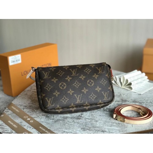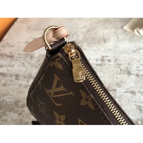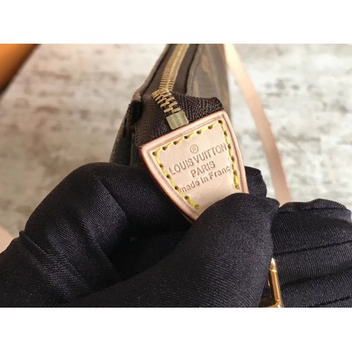 Detailed introduction: Pochette classic presbyopian small handbag, this Monogram canvas handbag is suitable for carrying cosmetics or daily belongings, can be hand-held or tied to a variety of Louis Vuitton handbags attached to the D-ring.