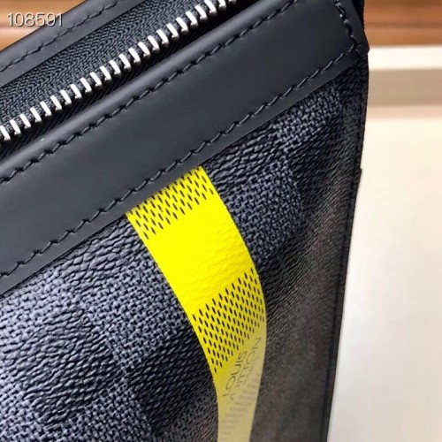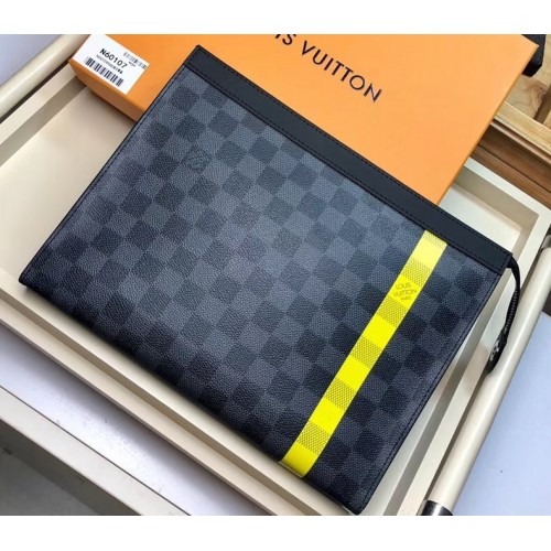 Louis Vuitton Pochette Voyage MM Bag Damier Graphite Canvas N60107 Yellow Stripe