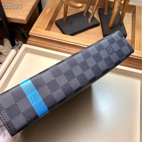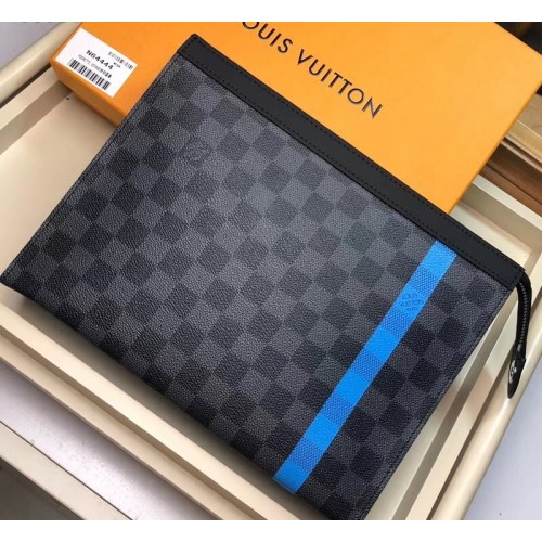 Louis Vuitton Pochette Voyage MM Bag Damier Graphite Canvas N64444 Blue Stripe