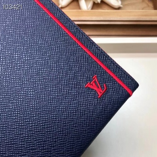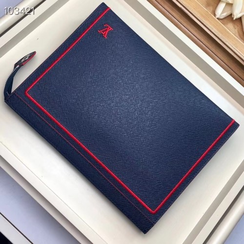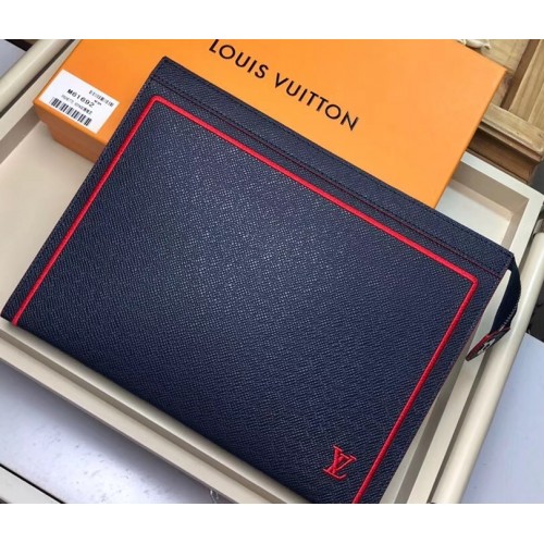 Louis Vuitton Pochette Voyage MM Bag Taiga Leather Outline Navy Blue/Red M63394