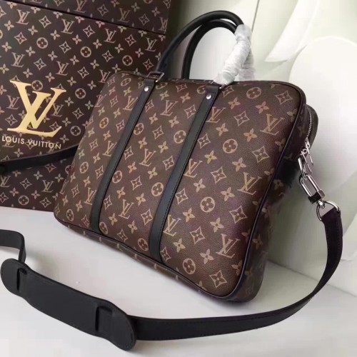 Louis Vuitton Porte-Documents Voyage PM Bag M52005 Monogram Macassar Canvas(75401)