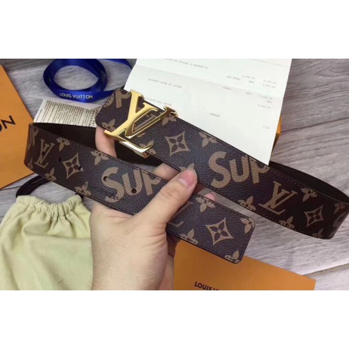 Louis Vuitton Supreme x Monogram LV Belt Gold Buckle Brown