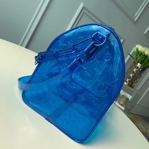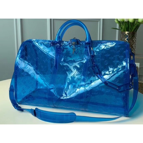 Louis Vuitton Transparent embossed Monogram PVC Keepall Bandouliere 50 M53272 Blue 2019